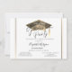 Casquette de graduation aquarelle, cadre doré et arrière - plan noir.