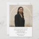 Célébrez cette étape spéciale avec l'Invitation de graduation Modern Script Graduate Photo Arch. Doté d'une police de script élégante et d'une disposition de photo en arc unique, cette invitation est parfaite pour annoncer votre réussite de manière élégante. Idéal pour les fêtes et cérémonies de remise des diplômes, il donne le ton d'une célébration mémorable.