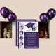 Graduation Invitation, thème Casquette & Diplôme, avec l'oeuvre "Année", en violet et blanc, avec arrière - plan violet. Retour de l'invitation inclut le nom du diplômé, Peut être personnalisé avec vos propres images, artwork, etc.