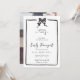 Elégante carte d'invitation Graduation avec un ruban élégant, noir et blanc. Trois photos à l'arrière.