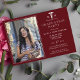 Moderne élégant rouge foncé bordeaux et blanc école de soins infirmiers graduation modèle de la carte d'invitation avec votre photo et texte personnalisé.