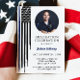 Cette invitation unique pour une fête de diplômé présente un drapeau de ligne bleue fine en aquarelle en détresse avec un design moderne. Cette invitation peut être utilisée pour tout membre du service, car la couleur du drapeau est modifiable ! Ajoutez facilement votre propre photo et personnalisez-la à votre goût !