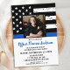 Ligne Bleue Mince Police Graduation Invitations ou Police Retraite Party Invitations. Célébrez des années de service dévoué, ou célébrez votre nouveau diplômé de l'académie de police, amis invitations et la famille à votre parti d'application de la loi avec cette Mince Ligne Bleue Drapeau de la retraite de police Invitation et de la police Invitation de diplôme de l'académie de police - Etats-Unis Drapeau américain dans les couleurs du drapeau de la police, conception en détresse. Cette invitation à la retraite des policiers est également parfaite pour les invitations à l'obtention d'un diplôme d'académie de police, lieu de changement dans la personnalisation. Consultez notre collection pour les cadeaux de retraite de la police, les cadeaux de fin d'études de la police, les faveurs de la fête et les fournitures. DROIT D'AUTEUR © 2021 Judy Burrows, Black Dog Art - Tous droits réservés. Graduation de la police Mince Ligne Bleue Appel à l'application de la loi