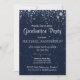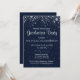 Invitation moderne et élégante à la remise des diplômes avec un bleu marine arrière - plan et argent étoiles et bulles de champagne. Vous pouvez facilement customiser le texte pour n'importe quelle occasion. Voir plus sur zazzle.com/GlitterInvitations