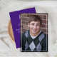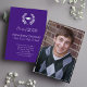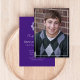 Ce design comprend une simple diplômée élégante invitation et faire-part, un casquette de graduation violet minimaliste, lauréat feuille classe tendance, classe de 2023 2024 2025, couleurs minimes violet blanc de l'école, photo de fin d'études, carte faire-part d'invitation à la remise des diplômes, lycée ou collège, un invitation de grande fête, simple classique