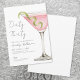 On the right side, a watercolor pink cosmo martini adds a cute pop of color, complete with a lime twist floating inside the glass. The vertical layout keeps everything clean and simple, with the party details arranged in an easy mix of serif and script fonts.