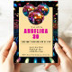 Invitation d'anniversaire aux boules Disco colorées et vibrantes. L'avant a tous les détails et informations en noir et le nom et l'âge à Magenta à pop, tout pour vous dans un cadre doré clair sur un arrière - plan d'une piste de danse. Le dos est noir. Invitations amis pour une fête de se souvenir de célébrer un grand anniversaire. Consultez toutes les autres options de couleur et les fournitures de fête de cette collection pour une planification d'anniversaire facile. Mélanger et faire correspondre.