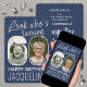 Regardez qui a 60 ans ! Famille Invitation et amis à une élégante célébration du 60e anniversaire pour lui ou elle avec 2 invitations personnalisées de fête photo. Les images et le libellé de ce modèle sont simples à personnaliser. Les couleurs bleu marine et blanc pour les contours arrière - plan, texte et nombre peuvent tous être customisées à l'aide de l'outil de conception Zazzle. (CONSEIL EN MATIÈRE DE PLACEMENT D'IMAGE : Une façon simple de positionner une photo exactement comment vous voulez est de la rogner avant de télécharger sur le site Zazzle. Si vous avez besoin d'aide supplémentaire, envoyez-moi un message :) Le design comprend deux images de votre choix, la calligraphie de script moderne et la typographie art déco vintage. Le design unique et neutre est également adapté à un homme ou à une femme. Joyeux Soixantième anniversaire !