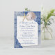 dentelle bleue royale vintage et des trésors de la plage créent une belle invitation à la douche nuptiale thème plage. Personnalisez le texte comme préféré.