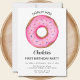 Prévoyez-vous une fête d'anniversaire pour une fille ? Cette mignonne invitation de fête d'anniversaire de Miss fille Donut est décorée d'une beigne d'aquarelle rose et dit "Miss beigne". Il a un motif en beignet sur le dos. Facile à personnaliser. Aquarelle originale © Michele Davies.