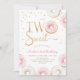 L'or rose blanc beigne deux douce invitation de fête de 2ème anniversaire. Design tendance et agréable avec beignets rose et blanc. Fonctionne typographie script police 1. Vous pouvez choisir des invitations imprimées et/ou le modèle numérique de téléchargement instantané. Idéal pour une célébration anniversaire féminine de style seconde fille.