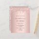 Une invitation moderne, élégante et glamour pour la fête d'anniversaire d'une jeune femme de 21 ans, ou n'importe quel âge. Un arrière - plan d'or rose avec des gouttes d'or rose, look goutte de peinture. Le nom est écrit avec un rose moderne de couleur or foncé à la main écriture style. Modèles pour les détails de votre fête. Conseil : Si vous ne voulez pas qu'il ressemble à une carte postale, cliquez sur customiser, allez à l'arrière et retirez le séparateur et le timbre postal.