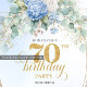 Invitation dorée florale bleue pour 70e anniversai