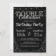 Elégante invitation de fête d'anniversaire pour une double célébration, avec des lumières de fée à cordes, parties scintillant en argent et modèle de police blanc sur un arrière - plan noir qui peut être changé à n'importe quelle couleur.