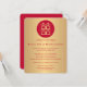 Un design contemporain avec le caractère chinois "Double Happiness" comme timbre circulaire. Le "Double Bonheur" orthographié xi ou "hsi" en mandarin et prononcé "shuang-xi" est un personnage chinois bien connu utilisé traditionnellement en mariage chinois comme symbole d'amour, de bonheur et de chance pour le couple nouvellement marié. La couleur rouge est une couleur aussi bien attendue que populaire dans la culture chinoise. Il symbolise la chance, le bonheur et la joie. L'utilisation de l'or comme couleur arrière - plan apporte prospérité et succès dans l'union. Un design qui s'adapte vraiment à toutes les fêtes mariages chinoises.