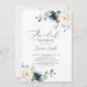 Belle marine bleu et blanc fleuri invitation douche nuptiale, bleu poussiéreux et marine thème nuptiale