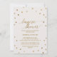 Cette carte d'invitation à la douche en lingerie pois dorée est parfaite pour une élégante douche nuptiale. Le design simple présente des confettis d'or chic sur un arrière - plan de champagne crémeux avec une belle calligraphie fausse feuille d'or et un fond bleu marine. Remarque : Ce design ne comporte pas de véritable feuille d'or. C'est un graphisme de haute qualité fait pour ressembler à du papier doré.