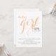 Jeune fille qui dort douche élégant texte pêche invitation minimale avec le texte bébé fille en pêche sur l'arrière - plan blanc et une petite fille en vêtements roses avec un peu bleu dormir sur un nuage et la lune croissant jaune. Texte en gris. Ce design modèle moderne et tendance, mignon minimaliste et personnalisé, est entièrement personnalisable. Vous pouvez modifier la couleur arrière - plan. Quelques éléments de Trina Clark.