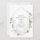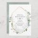 Invitation de douche de couple avec herbier d'eucalyptus de forêt sauvage dans des nuances de vert avec cadre géométrique doré et revers Silver Sage.