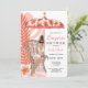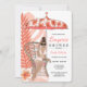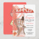 L'invitation de douche de mariage en lingerie présente des fleurs tropicales corail et rose, un parapluie et une mariée brune à venir. Disponible avec des cheveux blonds, bruns et roux et une peau claire et foncée.