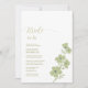 le design avant montre des fleurs vert sauge sur le côté droit et une invitation à la douche nuptiale écrite en vert olive sur le côté gauche. ce design unique et élégant est parfait pour votre douche nuptiale.