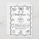 Bracelet blanc et noir dessiné à la main griffé blanc rétro style français mariage douche nuptiale Invitation. Annoncez votre prochaine douche nuptiale avec une invitation merveilleusement non conventionnelle. Ce design se distingue par son style dessiné à la main, avec des lignes en noir et blanc comme des gribouillis et des gribouillis évocateurs de l'art rétro français. Une collection d'illustrations de gribouillis ludiques, dont des coeurs, un anneau mariage et un arc de charme, sont intégrés au design. La police manuscrite et le cadre ondulé unique ajoutent une touche artistique à cette invitation, qui est une façon mémorable pour les invitations de prendre une douche nuptiale. C'est une invitation qui se démarquera et sera chère.
