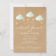 Douche de la façon virtuelle quand tu ne peux pas te réunir. Avec de mignons nuages vert menthe et des étoiles d'or sur cordes, sur un arrière - plan boho rustique neutre, ce baby shower virtuel en ligne neutre genre, saupoudrer ou les couples invitation à la douche est parfait pour tous les petits qui sont en chemin. Ajoutez les détails de votre célébration dans un texte élégant pour créer l'invitation parfaite. Conçu par Thisisnotme©