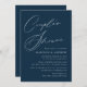 Simples couples douche des invitations avec "Douche Couple" affiché dans un script de calligraphie blanche avec un arrière - plan de marine. Personnalisez les invitations à la douche du couple de la marine avec les noms du couple et les détails de la douche ci-dessous. L'invitation de douche du couple moderne s'inverse pour montrer un arrière - plan de marine solide.