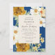 Cette aquarelle fleurie quelque chose de bleu thème chinoiserie nuptiale invitation à la douche dispose de fleurs sauvages de jardin en blanc, jaune chaud et orange.La couleur chaude jaune, crème, blanc et bleu poussiéreux est une palette de couleurs parfaite pour les mariages du printemps et de l'été.