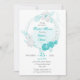 fleurs romantiques turquoises et blanches sur une belle invitation à la douche nuptiale en couronne de fer. Les détails de la parties scintillant sont simulés. Il convient aussi bien pour les soirées nuptiales que pour les baby showers.