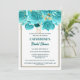 De belles fleurs florales roses de couleur bleu aqua ont un délicat faux fil d'or et différents feuilles de ton bleu dressés contre un arrière - plan blanc foncé qui a un faux bordé d'or. Ce design chic et élégant est idéal pour une douche nuptiale "bleu et blanc" ou "rose à thème fleuri", une fête d'anniversaire ou même un événement d'affaires. Personnalisez le libellé pour vous assurer qu'il convient à votre célébration spéciale.