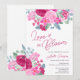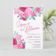 L'amour est en fleurs ! Venez célébrer la mariée pour être grand jour ! Notre invitation à la douche nuptiale présente des fleurs de prune et de rose surdimensionnées peintes à la main, avec un feuillage vert et bleu poussiéreux et une police de caractères de brosse moderne. Fête de mariée botanique de printemps parfaite.