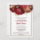De belles fleurs florales roses de couleur bordeaux ont un délicat faux filligree or et différents feuilles de tonus marron dressés contre un arrière - plan blanc foncé qui a un faux bordé d'or. Ce design chic et élégant est idéal pour une douche nuptiale "rouge, or et blanc" ou "rose à thème fleuri", une fête d'anniversaire à thème ou encore un événement botanique. Personnalisez le libellé pour vous assurer qu'il convient à votre célébration spéciale.