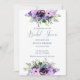Douche nuptiale violette et verte fleurie et élégante Invitation avec aquarelle et texte bleu marine.