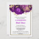 De belles fleurs florales roses de couleur violet ont un délicat faux filigree or et différents feuilles de ton lapis mis contre un arrière - plan blanc foncé qui a un faux bordé d'or. Cette aquarelle chic et élégante est idéale pour une douche nuptiale "violet, or et blanc" ou "rose à thème fleuri", une fête d'anniversaire à la campagne ou encore un événement botanique. Personnalisez le libellé pour vous assurer qu'il convient à votre célébration spéciale.