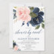 Invitation Douche par courrier baby shower bleu marine rose f