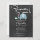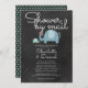 Une invitation charmante avec des parents mignons et des bébés éléphants avec le coeur et le baby shower interurbain personnalisé, saupoudrer ou couples douche par mail détails sur un arrière - plan de tableau noir. L'inverse a un motif de pois vert menthe sur un arrière - plan de tableau noir. Conçu par Thisisnotme©