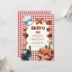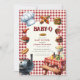 Lancez le grill pour une fête de baby shower amusante et savoureuse avec cette invitation charmant "Baby-Q"! Avec d'adorables aquarelles illustrant les plats classiques du barbecue comme les hamburgers, les hot dogs, le maïs sur le berceau et les haricots à la sauce tomate, le tout dressé contre un arrière - plan en vichy classique rouge et blanc. Cette invitation reflète parfaitement l'esprit décontracté et festif d'un baby shower jardin BBQ. Idéal pour inviter amis et famille à honorer les parents à l'occasion d'un événement délicieux et mémorable. Faites de votre baby shower un succès "fumeur" grâce à ce design unique et attrayant.
