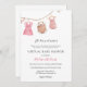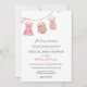 Un baby shower virtuel est parfait quand les êtres chers ne peuvent pas être ensemble, mais veulent quand même avertir les parents d'être avec amour et cadeaux pour se préparer à l'arrivée de leur bébé. Ce Baby shower longue distance par invitation par courrier comporte une adorable illustration de vêtements de petite fille rose accrochés à une ligne de vêtements. Personnalisez avec vos informations ou cliquez sur "Cliquez pour customiser plus loin" pour modifier les styles, la taille et les couleurs des polices.