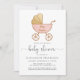 Cette jolie invitation à prendre une douche pour bébés vous permet d'invitation à un baby shower traditionnel, avec une option virtuelle pour ceux qui ne peuvent pas y assister physiquement à cause de la distance ou d'autres circonstances. L'avant présente le "baby shower" dans un script élégant avec des swashes et une aquarelle rose pastel et or d'un chariot rétro bébé (vous pouvez personnaliser le texte sur le chariot ou laisser vide). Personnalisez facilement la date, l'emplacement, le registre et un contact RSVP. A l'envers, la "douche virtuelle" est écrite dans le même script élégant, et vous pouvez fournir les détails pour rejoindre virtuellement la douche.