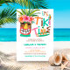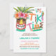 Une invitation à la douche à thème luau tropicale comporte un masque tiki peint à la main, ananas, planche de surf et perroquet avec typographie "It's Tiki Time". Idéal pour un bébé ou un wedding shower et des thèmes plage, île et été. Montré comme une invitation à la douche en couple mais vous pouvez le personnaliser pour montrer un seul nom selon le type de douche que vous avez. Oeuvre de KL Stock