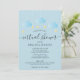 Douche virtuelle quand vous ne pouvez pas être ensemble. Caractérisé par des nuages mignons bleu bébé et des étoiles dorées sur des cordes sur un fond bleu bébé, cette invitation de douche de bébé virtuelle en ligne, de douche sprinkle ou de douche de couple est parfaite pour tous les petits qui sont en route. Ajoutez vos détails de célébration dans un texte élégant pour créer l'invitation parfaite. Créé par Thisisnotme©