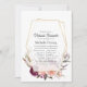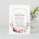 Invitation à la douche bébé ou à la nuptiale à fleurs Boho avec des pivoines de prune rose et bordeaux et des roses avec cadre géométrique or.