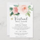 Une belle aquarelle rose flush florals et design verdoyant "Virtual" invitation de douche nuptiale avec design assorti sur le côté inverse. Facile à modifier ou à supprimer les champs de texte disponibles pour personnaliser les informations avec vos propres détails pour une finition professionnelle et personnalisée. Beaucoup d'objets assortis dans cette collection de fleurs boho. Visitez mon magasin pour voir la gamme complète. Stickers et étiquettes de adresse également disponibles.