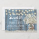 Bras Rustique Bébé Floral Jar Dusty Bleu Grange Bois & String Lights Sweet 16 Invitations.