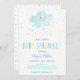 Cette adorable invitation présente un nuage avec des gouttes de pluie colorées et des confettis.