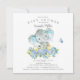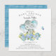 Adorable éléphant joyeux avec de jolies fleurs bleues pour un baby shower garçon. Retournez notre invitation pour voir un retour de coordination pour une touche spéciale supplémentaire.