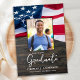 Célébrez la réussite de votre diplômé avec nos invitations patriotiques à la fête de remise des diplômes. Présentant un design moderne avec du bois rustique et le drapeau américain en rouge, blanc et bleu, ces invitations sont parfaites pour les diplômés du lycée, du collège ou de l'université. Que votre diplômé soit militaire ou non, ces invitations sont une excellente façon de montrer votre soutien et d'honorer leur accomplissement. Utilisez-les pour la famille et les amis invitations à une fête joyeuse et de mettre en valeur votre fierté dans la classe. DROIT D'AUTEUR © 2023 Judy Burrows, Black Dog Art - Tous droits réservés. Drapeau américain patriotique Invitation de graduation militaire