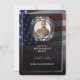 Photo personnelle décorée de feuilles de laurier argentées et d'un cadre argenté sur un glorieux drapeau américain flottant sur un fond noir. Un modèle de fête de retraite élégant avec photo facile à éditer. Ce design luxueux convient aux vétérans, aux militaires, à la police, aux emplois liés au gouvernement ou aux emplois liés au patriotisme.