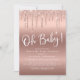 Célébrez la future mère à distance de sécurité avec une voiture par baby shower. Cette invitation de baby shower élégante et luxueuse, sans distinction de sexe, présente une fausse parties scintillant rose en or qui s'écoule du haut et "Oh Baby !" dans un script blanc élégant en dessous contre un arrière - plan or rose. Vous pouvez facilement personnaliser avec le lecteur par les détails de la douche.